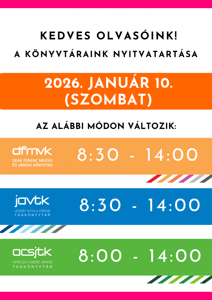 2026. január 10-én, szombaton 8.30-14.00 óra között várjuk olvasóinkat.